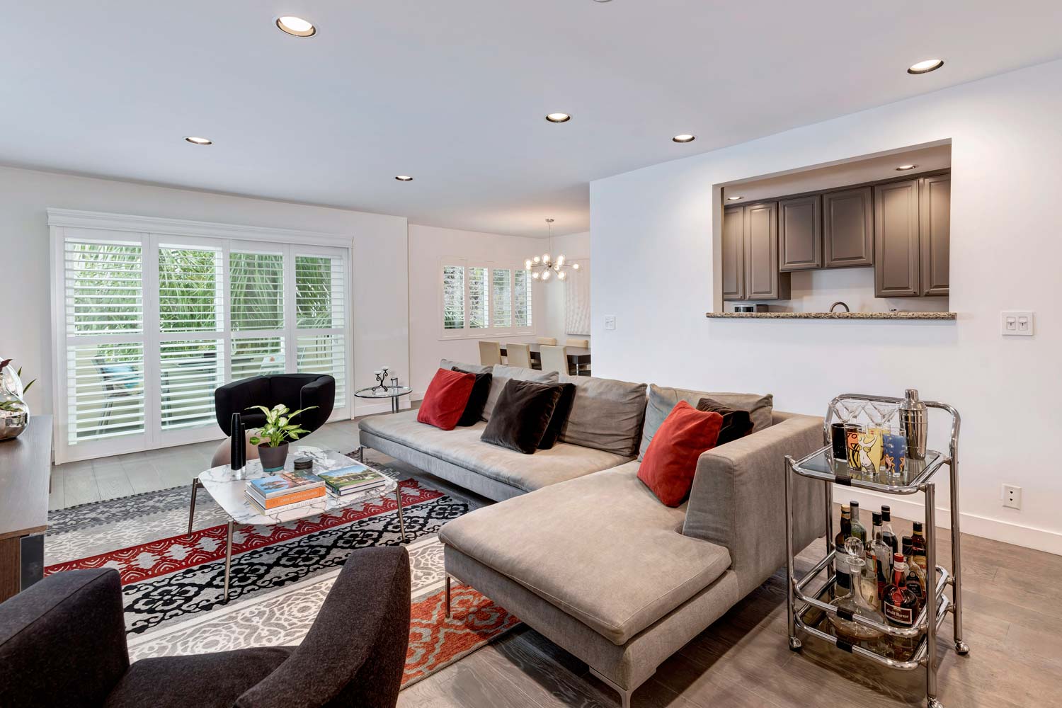 Rare Top floor West facing corner unit on coveted Kings Road! Absolutely pristine 2 bed 2 bath extensively & tastefully renovated condominium featuring newer hardwood flooring, recessed lighting, updated kitchen w/ stainless steel appliances, dual paned windows throughout, plantation shutters, custom closet organizers, central AC, balcony, & partial city views! Impeccably maintained building has elevator, pool, fitness center, sauna, EQ insurance, & strong reserves. 2 side by side parking spaces. Moments from the very best restaurants, cafes, boutiques, shopping, & entertainment in West Hollywood.